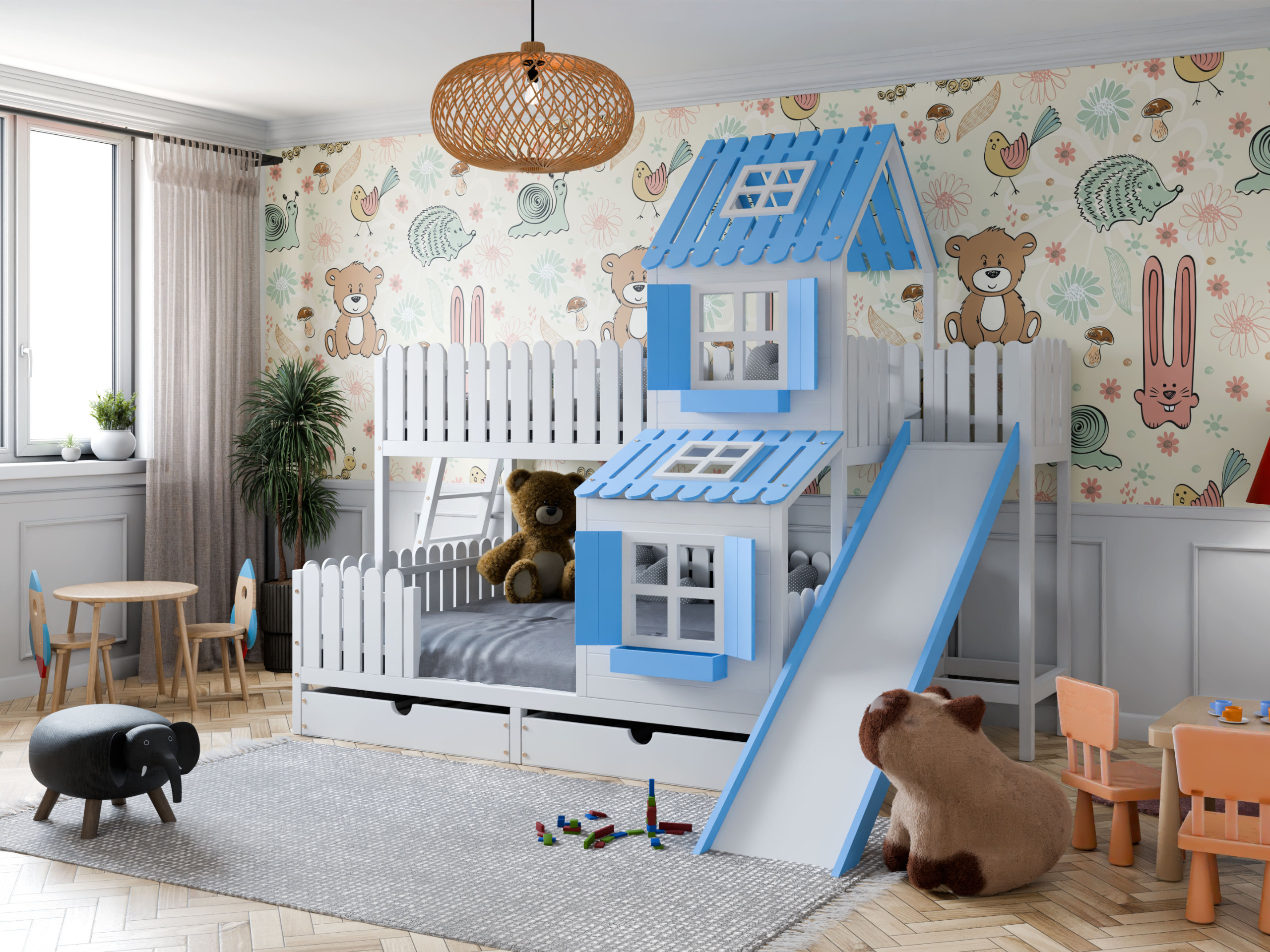 Seria wizualizacji 3D łóżeczek dziecięcech.